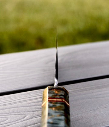 Brute-de-forge chef knife. Maple burl handle with g10 and brass spacer.